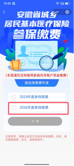 特别提醒:在缴费界面缴纳城乡居民医保费时,请居民朋友们注意缴费年度(选择2026年度参保缴费)。缴错参保年度会影响您的医保待遇!