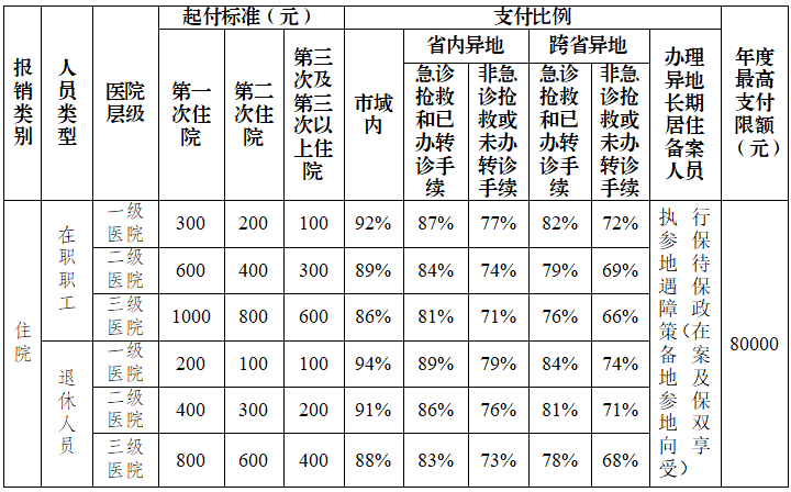 1.职工医疗救助段:主要解决基本医疗保险统筹基金最高支付限额(8万)以上,并符合基本医疗保险“三个目录”规定的住院和门诊慢特病政策范围内医药费用。